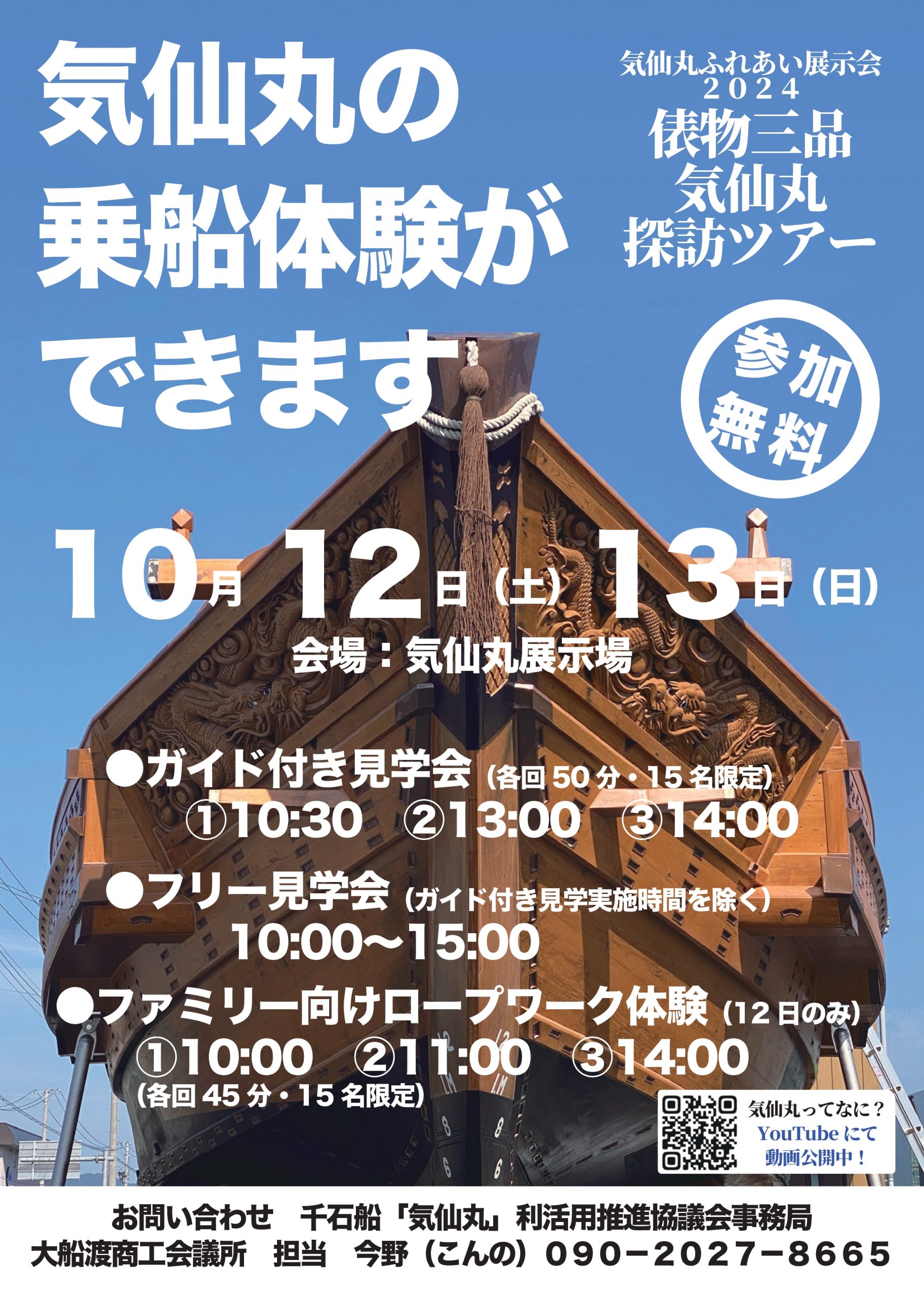 また、今年も大船渡市産業まつりとの同時開催ですので、産業まつりを楽しんだ後は、気仙丸に乗って気仙大工の技と気仙地域の歴史を感じてください。